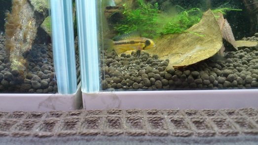 おかあちゃんは大分神経質みたいで、隣の水槽の写り込みがかなり気になるみたいなんで、応急処置でファイルを間にいれておきました。